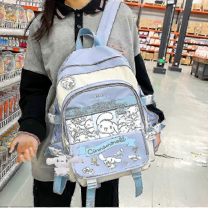 New Sanrio Plush Toy Backpack Children Girl Boy Black Y2k Blue Schoolbag Kawaii Student School Bag Computer Large