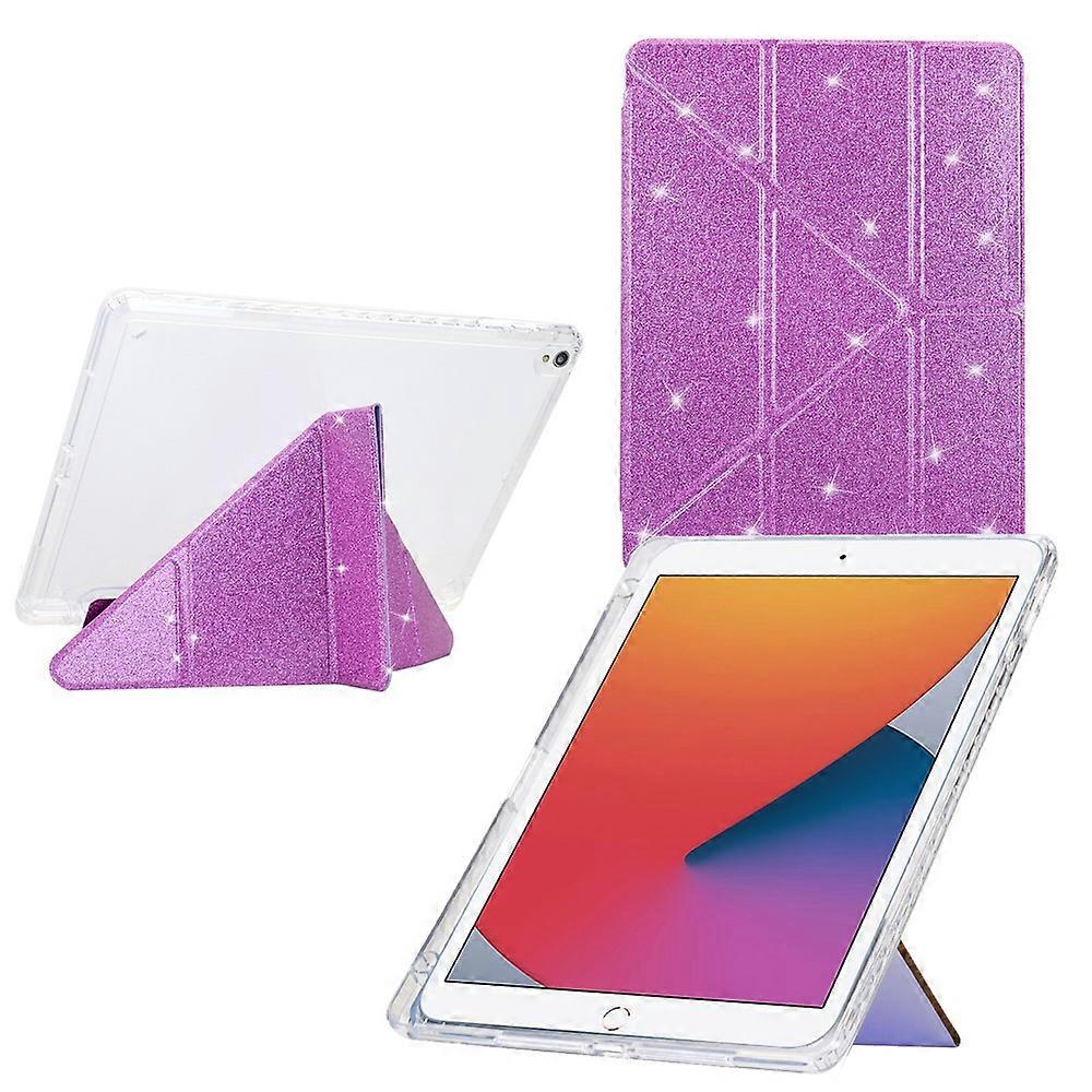 Tablet Case For iPad 10.2 (2020) (2019) Air 10.5 inch (2019) Y-Fold Stand Glitter Leather TPU Acrylic Clear Cover Purple