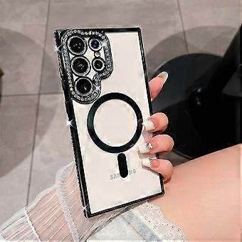 Glitter Galaxy S24 Ultra Magnetic Case, Cute Luxury Plating Bling Rhinestones Soft Clear TPU Thin Li