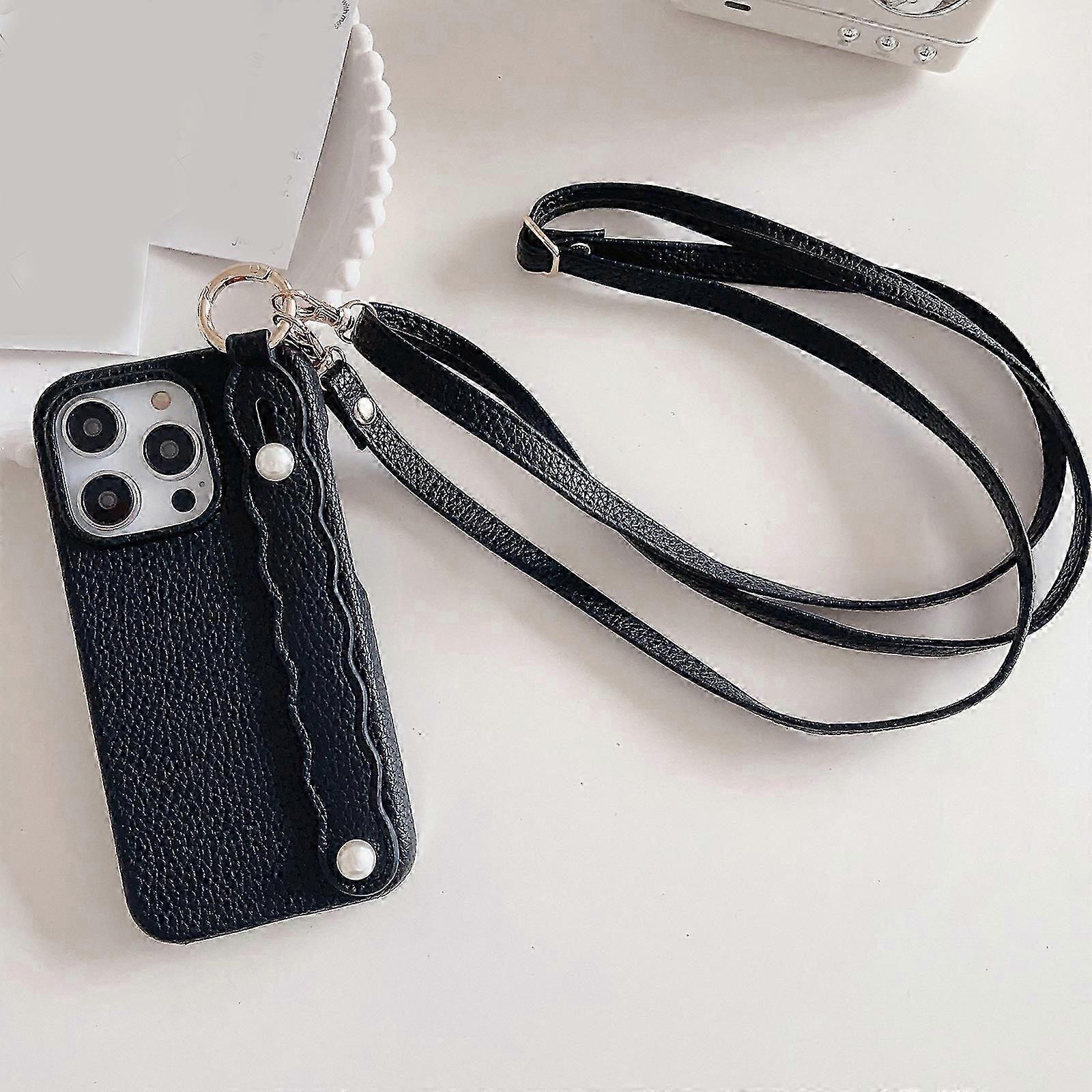 Leather Case for iPhone 15 Pro Max/15 Ultra with Wristband Stand, Luxury Shockproof Leather Case 15 Pro Max/15 Ultra with Crossbody