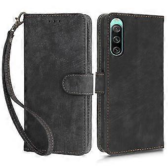 For Sony Xperia 10 IV 5G Phone Leather Case Stand Wallet RFID Blocking Phone Cover with Strap