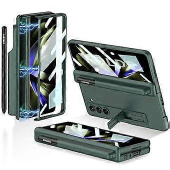 CompatibilityCompatible with Samsung Galaxy Z Fold 5 5G (2023 Released) Only. (S Pen not included) Full Body Protect Z Fold 5 CaseThe Galaxy Z Fold 5 case with front protective cover built in tempered glass screen protector. Used sensitive touch clear tempered glass protector film prevent your phone from scratches cracks and drops. S Pen Slot & Hinge ProtectionThis Z Fold 5 case with S Pen slot, vertical pull out and put in, which perfectly to keep your S Pen and not easy to lose. The hinge adsorption makes the Galaxy Z Fold 5 case seamlessly connected, powerful magnetic closure method, fully protect your Z Fold 5. Fold 5 Case with KickstandDesign for Samsung Fold 5 case with built-in kickstand allows you place it horizontally or vertically on the table to free your hands, and bringing you a unique multi-angle viewing. Lightweight & Premium MaterialThe Samsung Galaxy Z Fold 5 case made of premium hard PC material which is durable and has good touch feeling, beautiful matte finish. It is ultra slim thin and lightweight, adds no bulk to your phone.