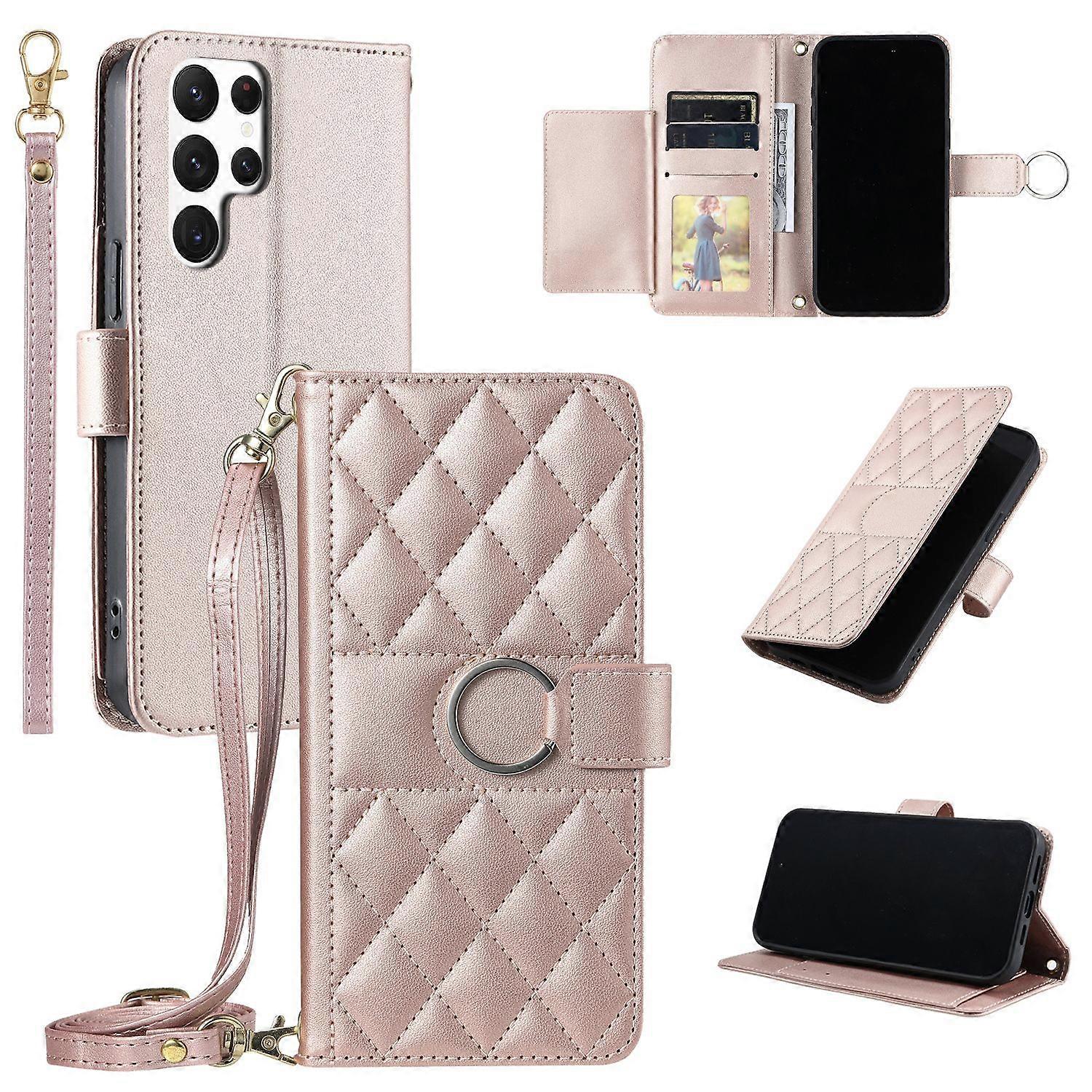 Compatible model:Samsung Galaxy S24 Ultra.Please check the compatible models and screen size before purchasing. Stylish Quilted Leather Design with Premium Finish:This phone case features a sophisticated quilted diamond-pattern design in a rich teal color, giving it a luxurious and textured appearance. The high-quality leather-like material ensures durability while maintaining a sleek, fashionable look that complements any outfit. Magnetic Ring & Detachable Wristlet Strap for Convenience:The front of the case is adorned with a prominent silver-toned metal ring, which doubles as a stylish accessory and a functional element for attaching a wristlet strap or keychain. The detachable strap, secured with a gold-colored clasp, allows for hands-free carrying, making it perfect for on-the-go use. Multi-Functional Wallet Compartment with Multiple Card Slots:Designed as a phone wallet hybrid, the case opens to reveal 4 card slots, 1 cash slot, and 1 photo slot, providing ample storage for essentials like credit cards, IDs, and cash. The flip-open design ensures quick access while keeping your belongings secure. Built-In Magnetic Closure & Kickstand for Hands-Free Viewing:The case includes a magnetic clasp for secure closure, ensuring your phone and cards stay safely in place. Additionally, the flip cover doubles as a stand, allowing you to prop up your phone for hands-free video calls, movie watching, or browsing. Other Functions:Users can access all essential ports, buttons, and functions without any effort by the precise cutouts. Invisible kickstand can be switched to a horizontal position and acted as a firm stand. If you need a leather case for another model, please contact us.