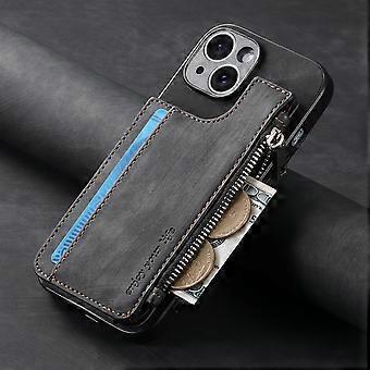 جراب لآيفون 14 برو أسود تصدير متعدد البطاقات للأعمال ريترو بسحاب تخزين جلد No5725