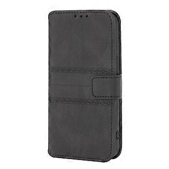 جراب لآيفون 14 برو أسود فانتسي منقوش جلد بطاقة محفظة لون خالص Ee1098