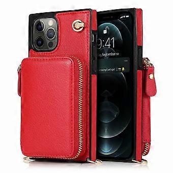 جراب لآيفون 14 برو ريد كروسبودي كبير سستة حامل بطاقة فتحة محفظة حبل جلدي Ee1274