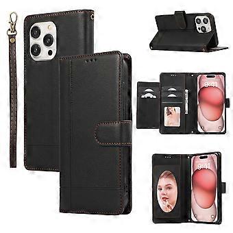 جراب لآيفون 14 برو ماكس أسود حزام يد قصير مرآة فتحة متعددة البطاقات فليب جلد كروس بي
