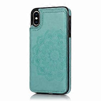 جراب لآيفون 14 برو نعناع أخضر منقوش ماندالا حامل بطاقة مشبك مزدوج محفظة No5387