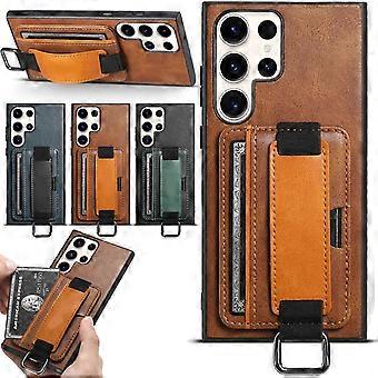 جراب لسامسونج جالاكسي S24 ، جراب محفظة مع فتحات للبطاقات ، حافظة واقية من المعصم والمسند