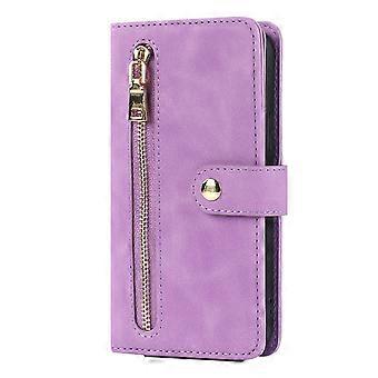 جراب لهاتف ايفون 14 برو بنفسجي فاتح جيب أمامي بسحاب محفظة جلد رقم 5625