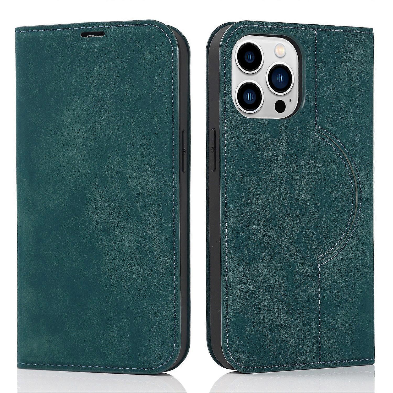 Case For Iphone 14 Pro Max Blue Leather Wireless Charging Magnetic Flip No5600