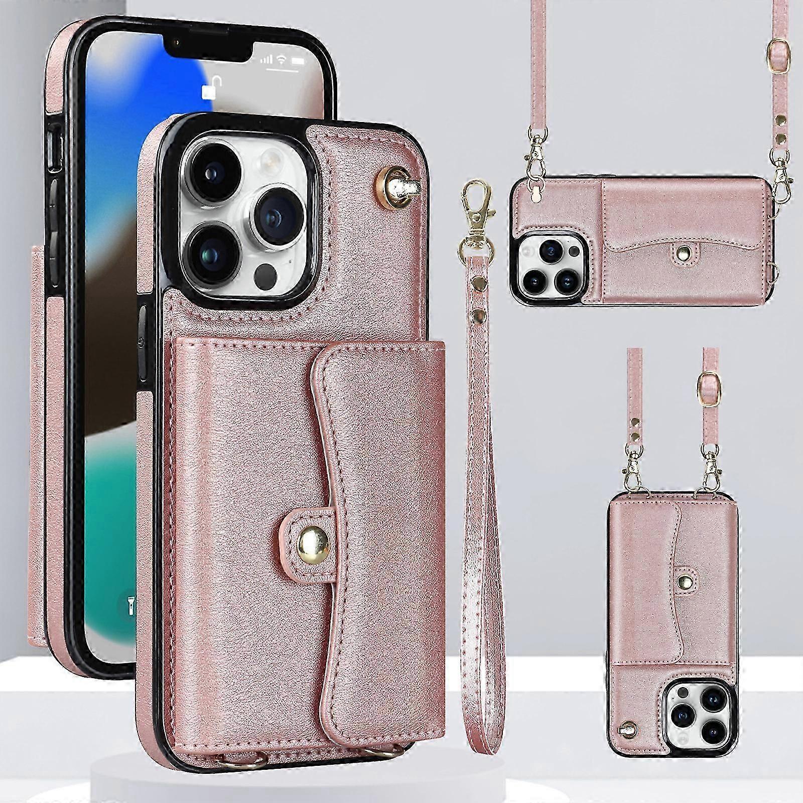 Case for iPhone 15 Pro Max/ 15 Ultra, Crossbody Case with Card Slots, Detachable Strap Wristlet Leather Protective Phone Cover
