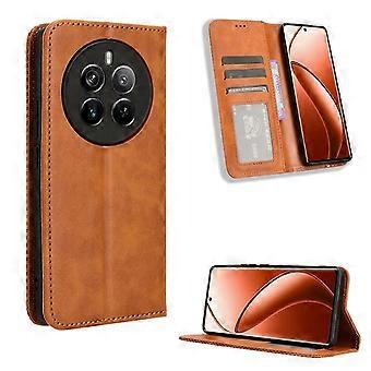 Case for Realme 12+ / 12 Pro, Retro PU Leather Magnetic Full Body Shockproof Stand Flip Wallet Case Cover with Card Holder for Realme 12pro / 12 pro p