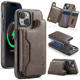 MAGKING K3 Series For iPhone 14 Case Compatible with MagSafe Wallet PC + TPU + PU Phone Cover Coffee