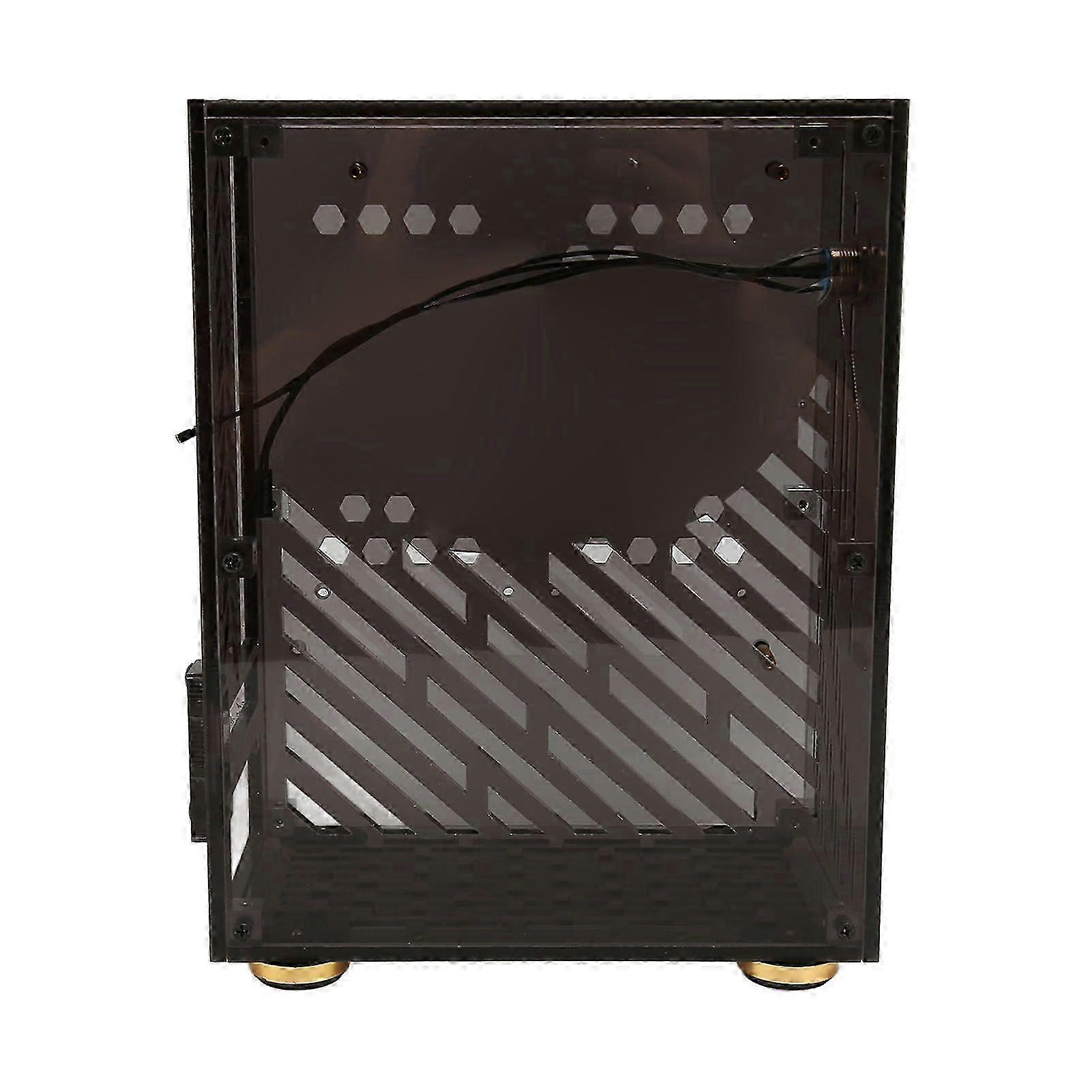 Mini ITX Case 4.3L Clear Acrylic Panel 360 Degree Cooling Cushioning Foot Pads Mini PC Case for FLEX 1U Power 2.5in SSD Black