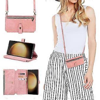 Crossbody Wallet Phone Case for Samsung Galaxy S24 Ultra, Zipper Magnetic Flip Cover with Card Slot Holder with Lanyard Strap