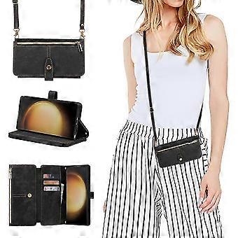 Crossbody Wallet Phone Case for Samsung Galaxy S24, Zipper Magnetic Flip Cover with Card Slot Holder with Lanyard Strap