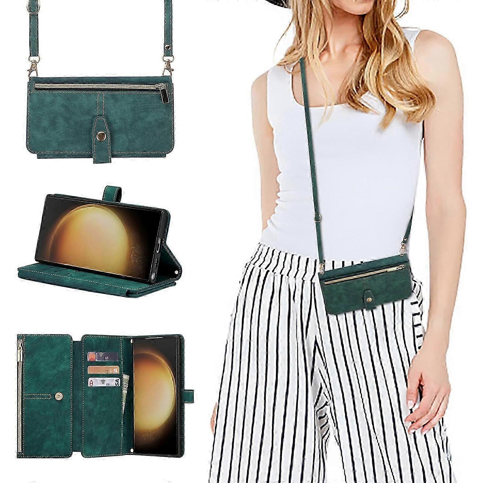 Crossbody Wallet Phone Case for Samsung Galaxy S24 Plus, Zipper Magnetic Flip Cover with Card Slot Holder with Lanyard Strap