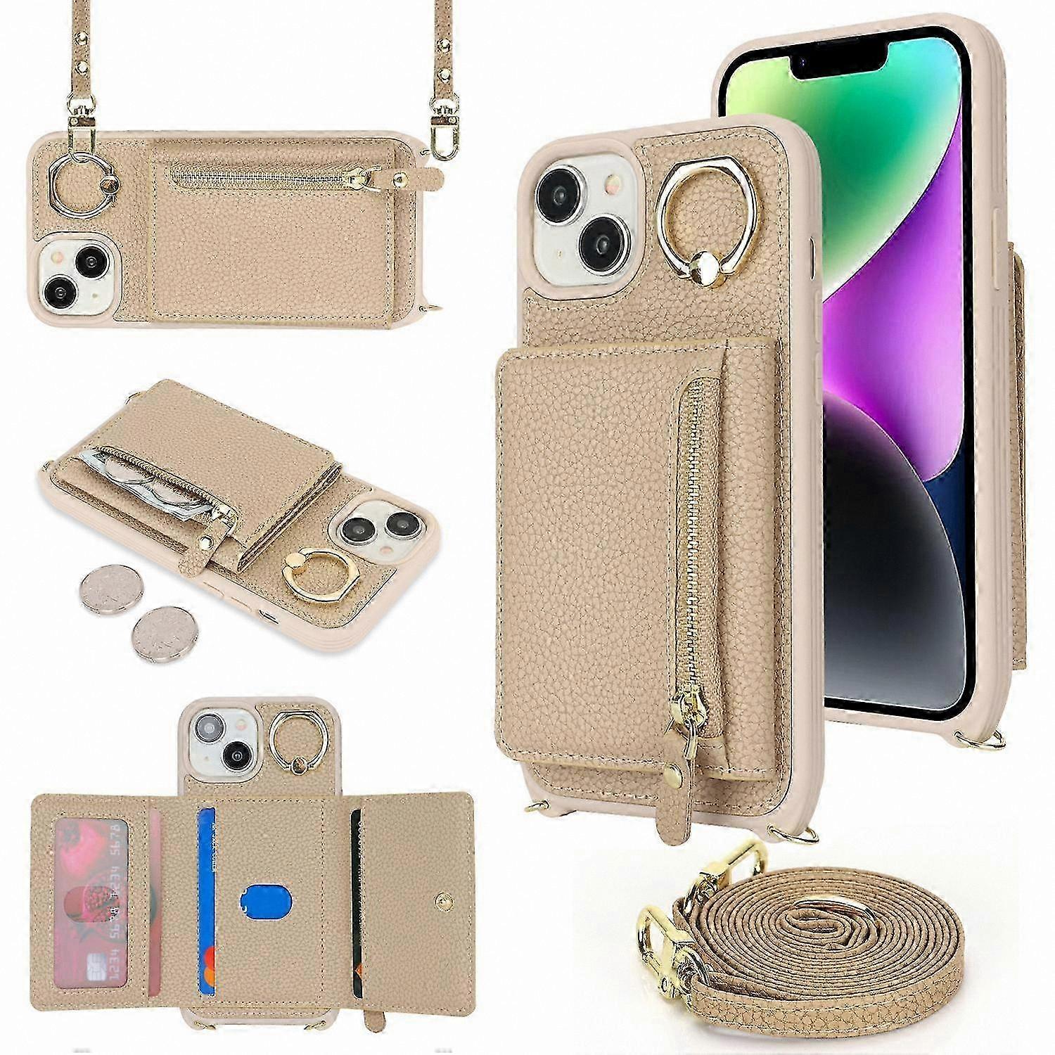 Textured Phone Case with Card Holder, TPU Leather Crossbody Cover and Kickstand for 13/14 Models