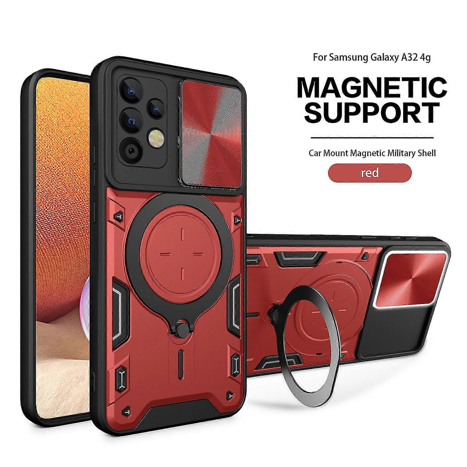 Magnetic Phone case For Samsung A32 4G, Slide Camera Lens Protection and Built in 360 Rotatable Ring Holder
