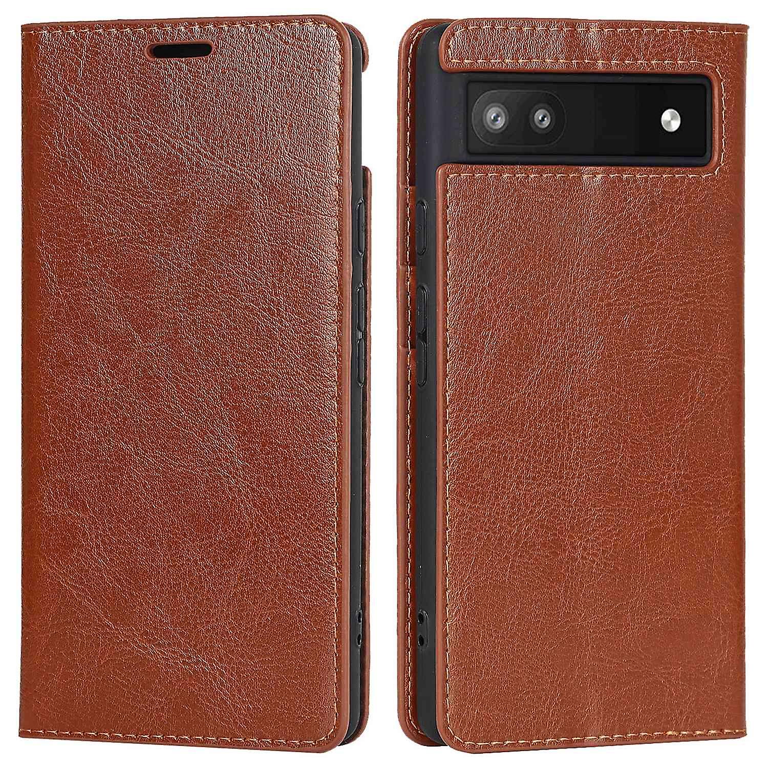 Genuine Leather Phone Case for Google Pixel 6a,Wallet Stand Crazy Horse Texture Shell