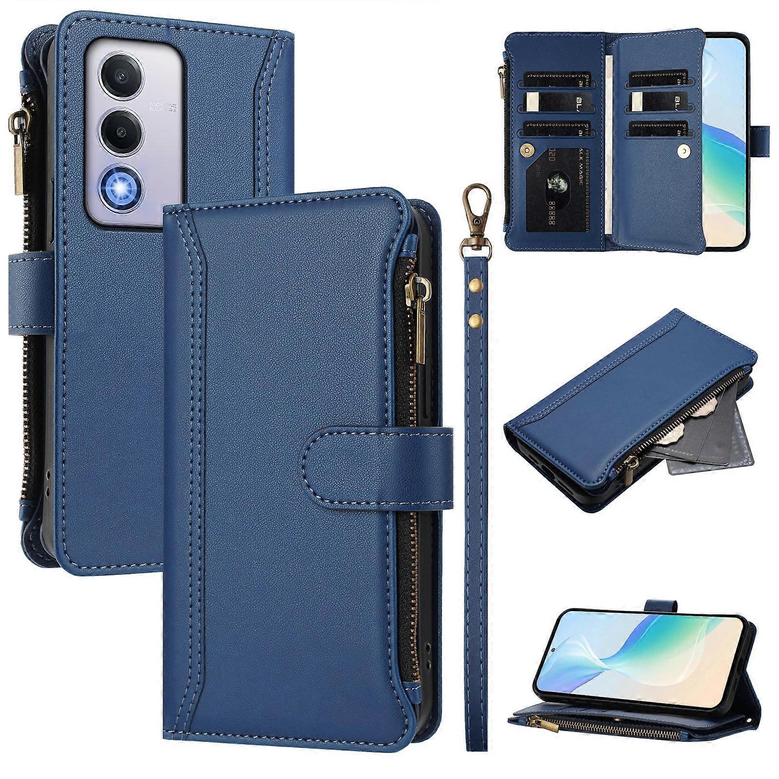 Case for OPPO A80 5G Premium Leather Zipper Pocket Wallet Phone Case with 9 Card Slots and Detachable Wrist Strap