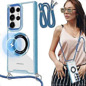 for Samsung Galaxy S24 Ultra Case Clear with Crossbody Strap, [Compatible with Mag Safe], Adjustable Lanyard Magnetic Phone Case