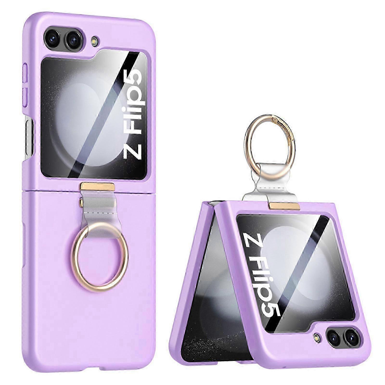 for Samsung Galaxy Z Flip 5 Case with Ring, Slim Thin Protective Case with Screen Protector, Hard PC Shockproof Case for Z Flip 5 with Ring