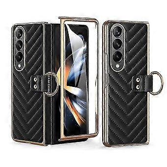 Z Fold 5 Case With Ring Stand & Screen Protector, PU Leather Electroplating All Inclusive Case For Samsung Galaxy Z Fold 5 5g Case