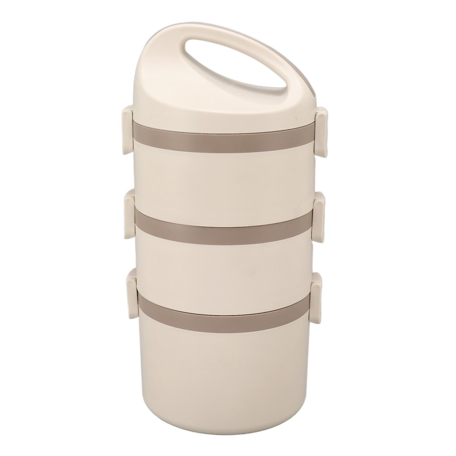 Insulated Food Jar Food Grade Stainless Steel Large Capacity 3 Tiers Stackable Lunch Box for School Picnic Camping Beige