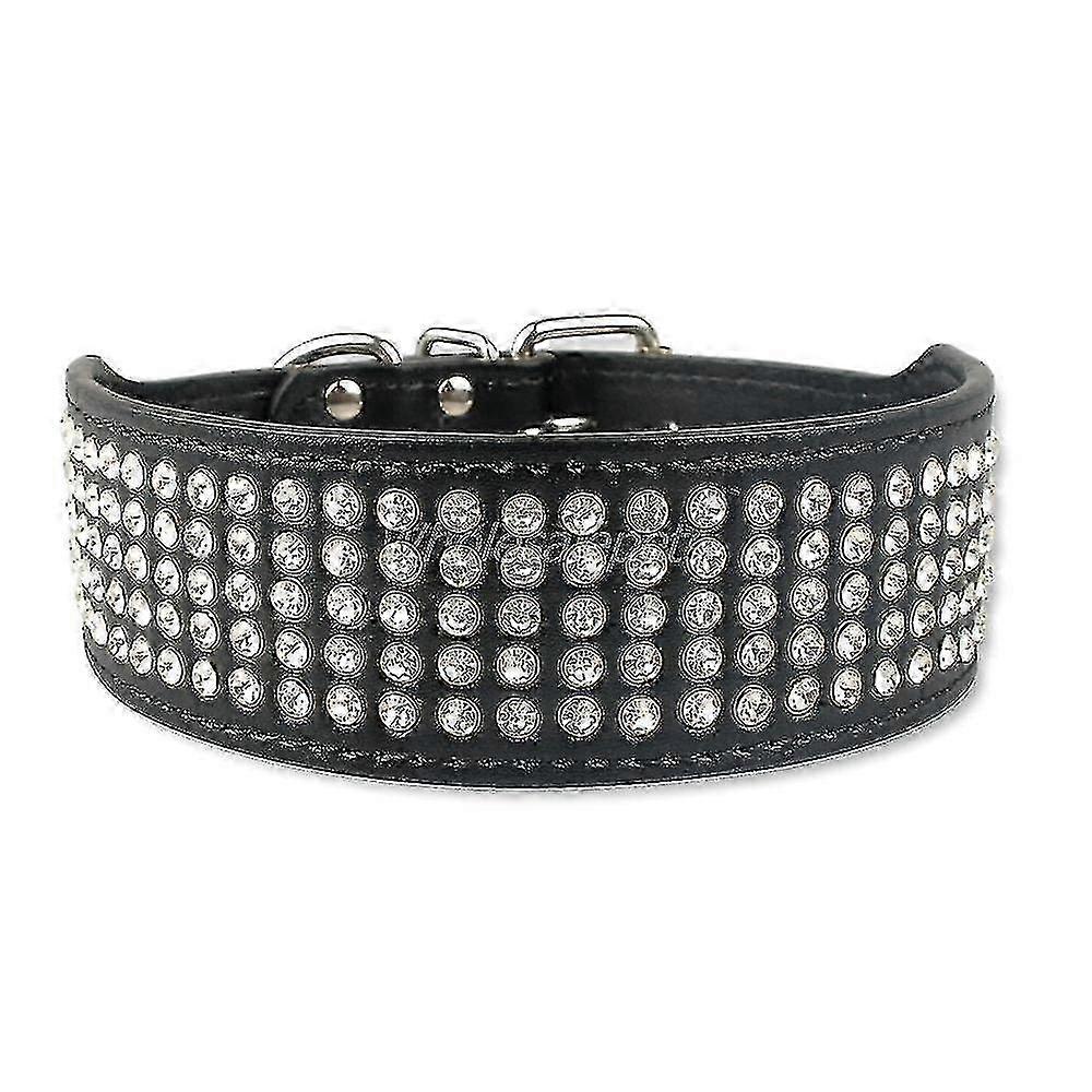 Leather dog collars bling diamante crystal studded dogs pet collars 2inch wide for medium & large dogs pitbull boxer