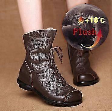 Genuine Leather Plush Women's Short Boots Retro Casual Autumn Winter Women's Boots Waterproof Leather Warm Snow Boots