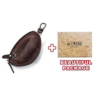 Genuine Leather Coin Purse Men Short Mini Wallet Key Bag Zipper Split Car Key Bag Housekeeper Key Case Small