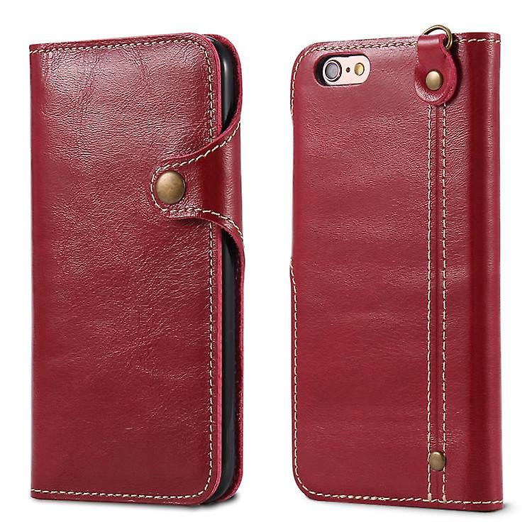 Genuine Leather Wallet Case Card Slot For Iphone7 /8 Rose Red Buttons No4463