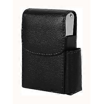جلد علبة السجائر مع حامل ولاعة ، صندوق سجائر علبة سجائر (أسود)
