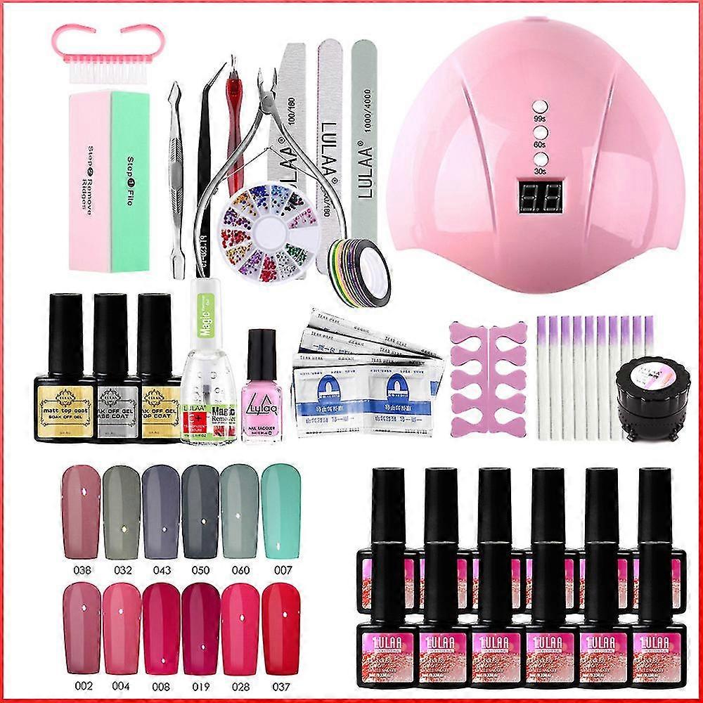 Gel Nail Polish Kit Starter With U V Lamp Portable Led Dryer Lamp, 12 Colors Soak Off Pastel Pink Gel Nail Polish Set/gel Top & Base Coat/essential Ma