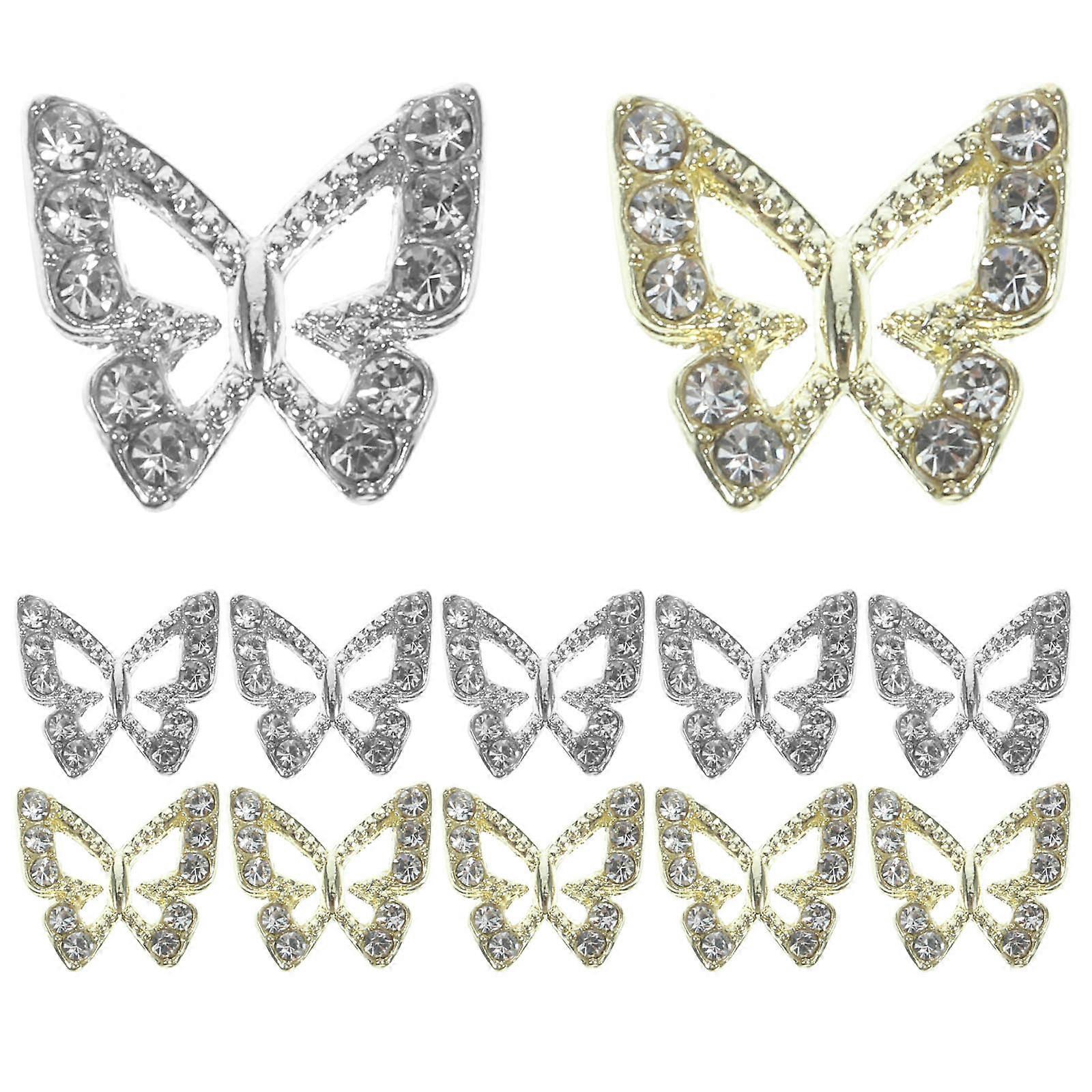 Beautiful Nail Charms Butterfly Nail Art Charms with Rhinestone 20Pcs Set