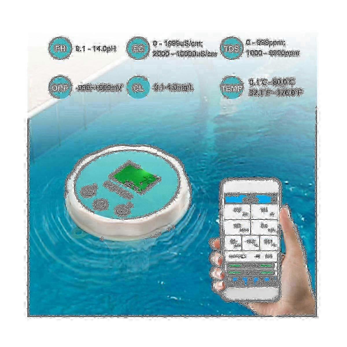 6-in-1 Water Quality Tester: Ph, Ec, Tds, Orp, Temp, Chlorine For Pool - Bluetooth App Display