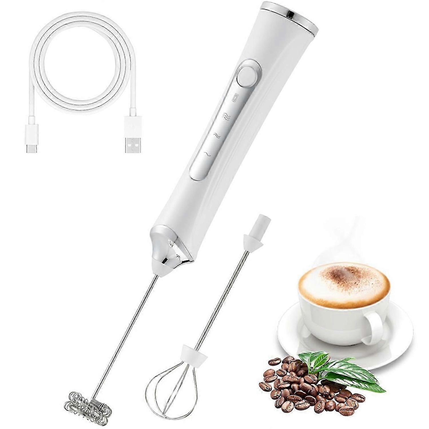 Handheld Electric Milk Frother with 2 Heads, Coffee Whisk Foam Mixer