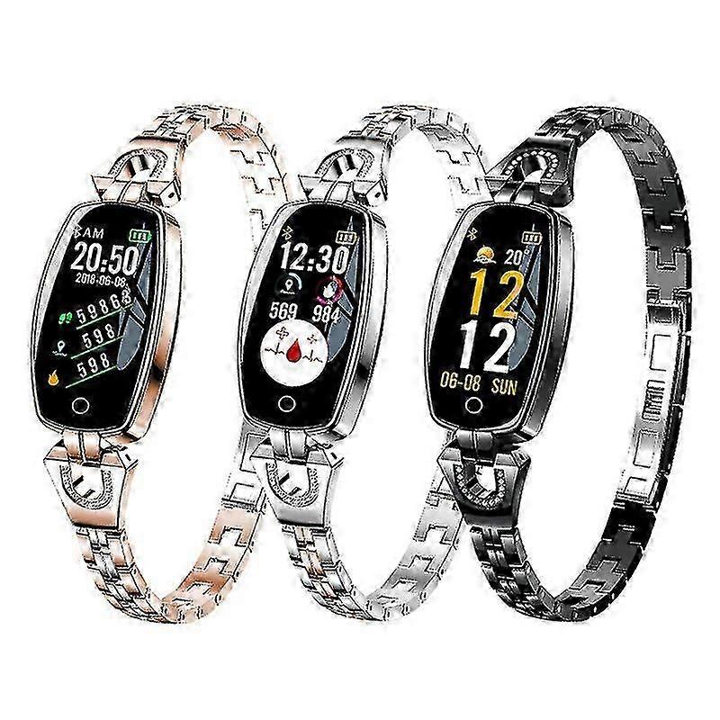 H8 Smart Bracelet Measuring Blood Pressure Heart Rate Blood Pressure Multifunctional Waterproof Ladies Sports Pedometer Watch Screen size: 0.96 Appearance size: 43*18*12mm Material: Metal Battery capacity: 120mAh Product weight: 179 (g) Wearing method: wristband Operation mode: touch Interface: USB 2.0 Wireless distance: 5m (inclusive)-10m (inclusive) Communication function: not supported Wrist strap material: metal Additional functions: step counting, smart reminder, remote control Selfie, Shipping list: 1pcs bracelet