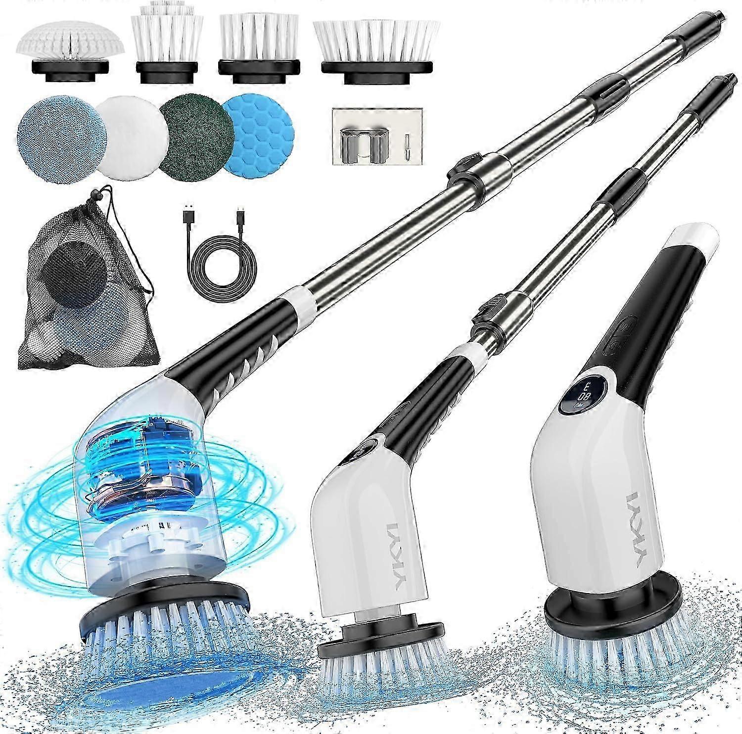 Electric Spin Scrubber,Cordless Cleaning Brush,Shower Cleaning Brush with 8 Replaceable Brush Heads, Power Scrubber 3 Adjustable Speeds,Adjustable & D