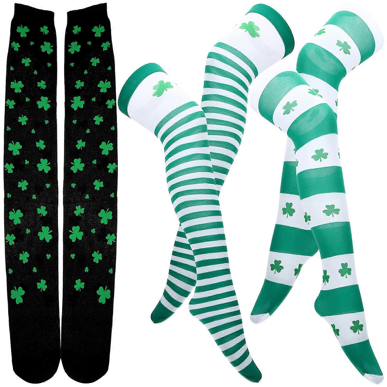 Patty's Day Socks Patrick鈥檚 Over Knee Socks Thigh High Socks Green 3 Pairs Festival Atmosphere Enhancement