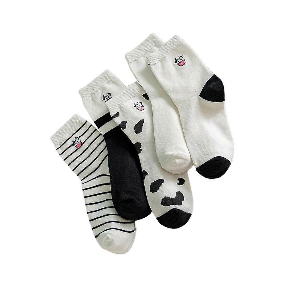 Embroidery Cow Mid-Calf Socks for Women 5Pairs Comfortable Cotton Socks
