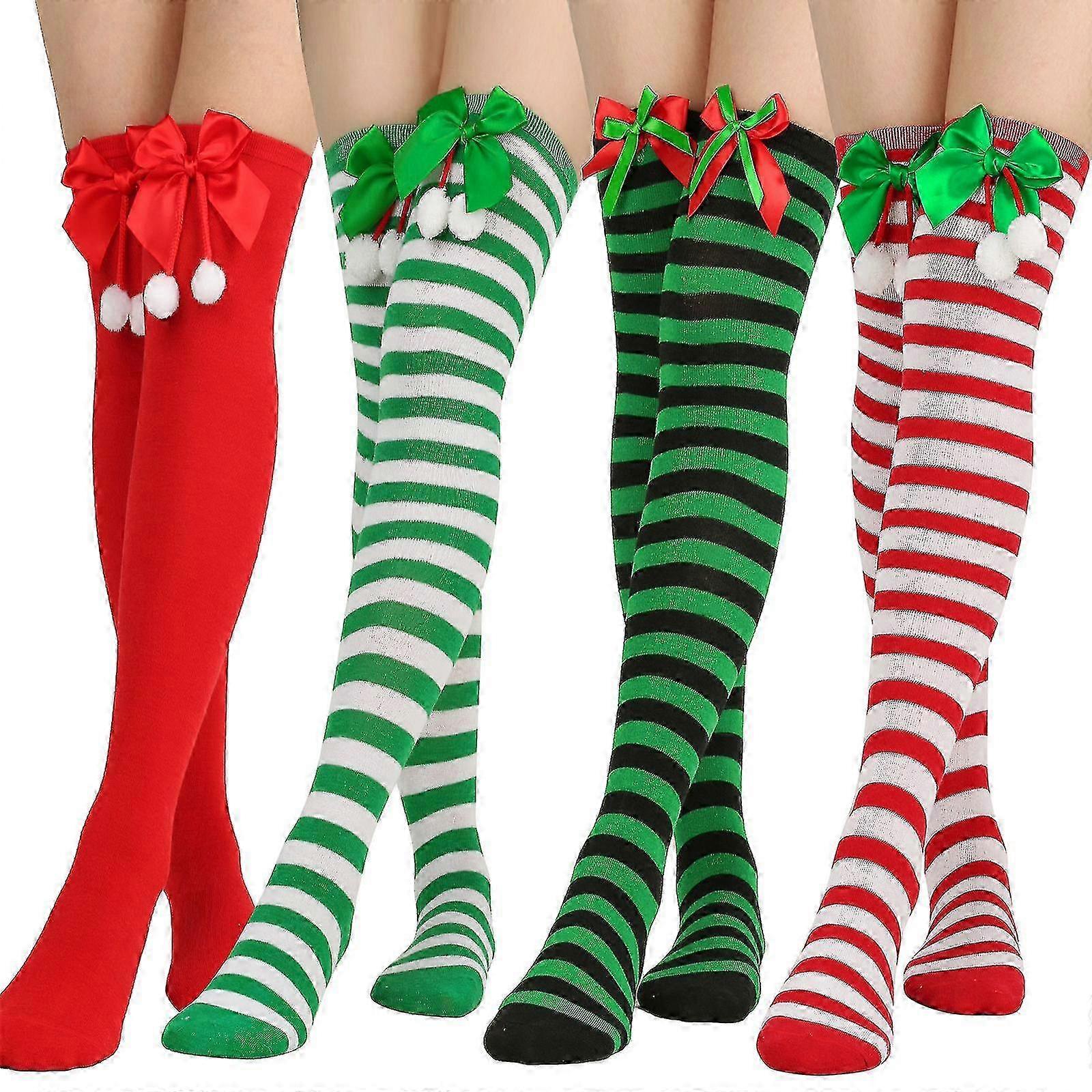 Christmas Stockings / Festive Striped Stockings, Knee Socks, Overknee Stockings, Long Striped Socks, Leg Warmers, 4 Pairs Of Thigh Socks For Women And
