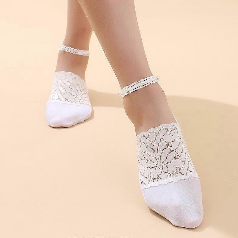 Womens Breathable Thin Pearl Floral Boat Socks Lace Summer Invisible Ankle Socks