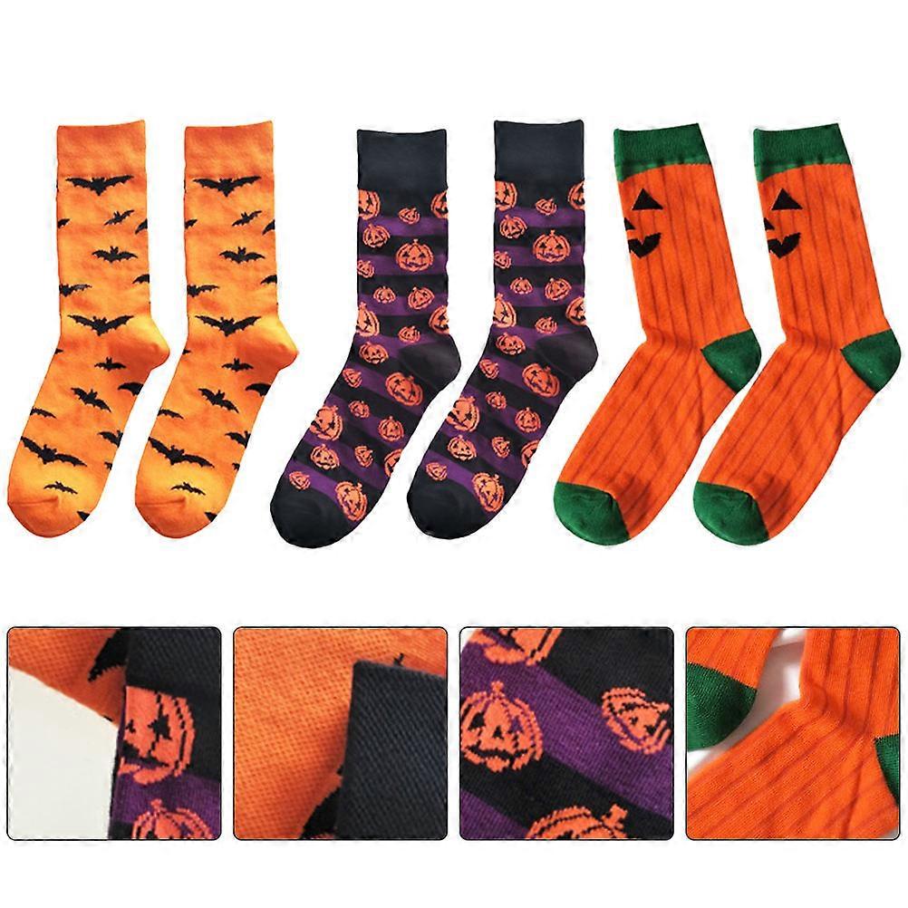 Halloween Stockings Cartoon Socks Creative Halloween Pattern Socks 3Pairs Sweat Absorption