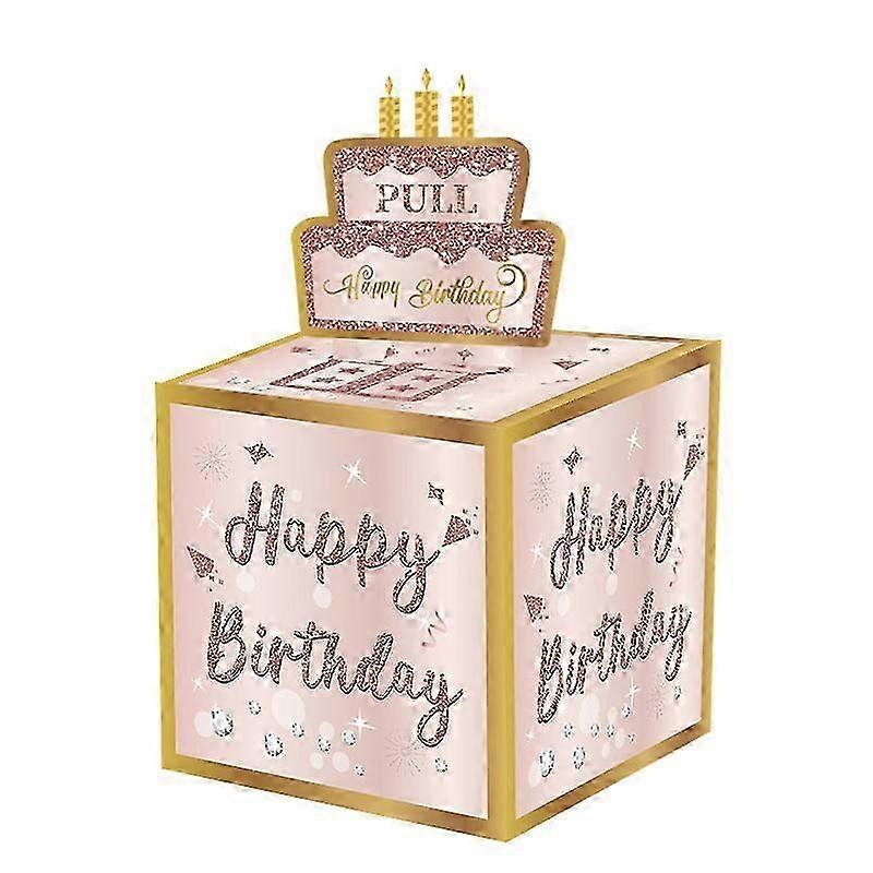 high quality Happy Birthday Money Gift Box with DIY Stickers for Any Age - Pink Rose Gold Surprise Birthday Party Cash Gift Box with Pull Out Card for