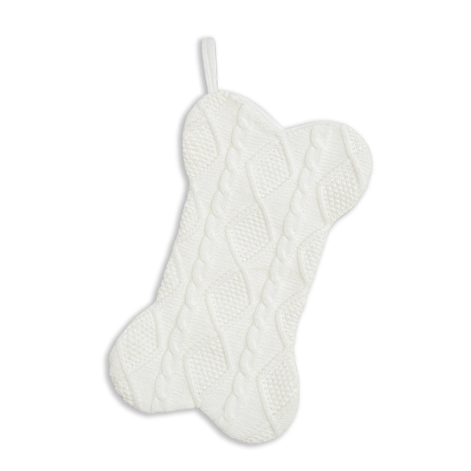 Bone Shaped Knitted Sock Large Capacity Christmas Stocking Stylish Present Bag Holiday Decoration for Fireplaces White