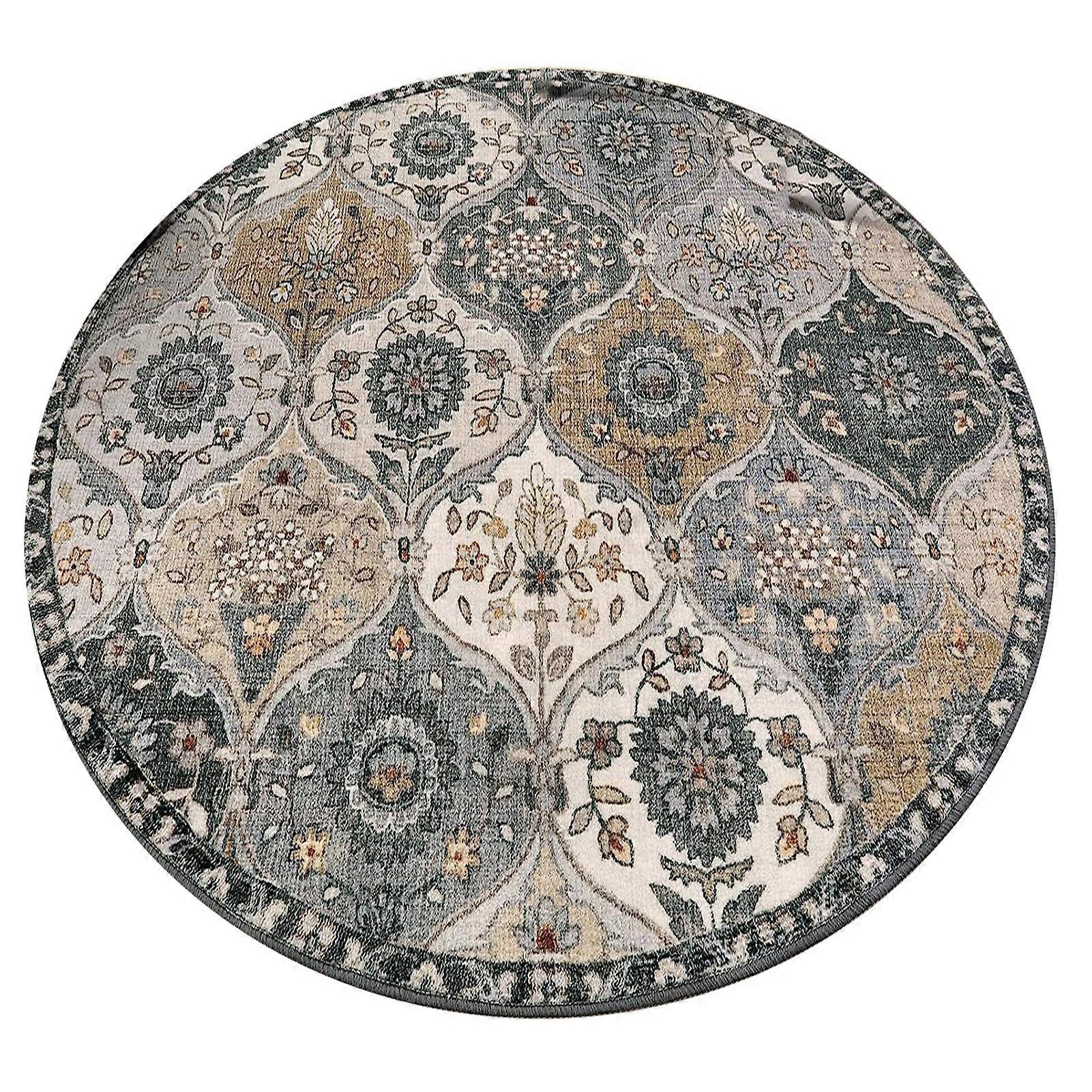 Round Moroccan Area Rug Vintage Flower Print Distressed Machine Washable Living Room Bedroom Office Kids Room Indoor Decoration Mat Floor Carpet