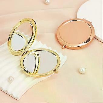 Round Double Side Metal Pocket Mirror Makeup Folding Mirror Hand Held Make Up Mini Mirror Cosmetic Gifts Purse For Travel